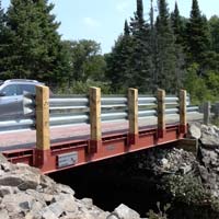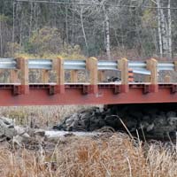 Lessard Municipal bridge products are available in single, single wide and two lane widths. They are delivered in two or three sections and with basic construction knowledge and equipment, can be installed and in use in a matter of hours. Our modular superstructures are a cost effective replacement for bridges located on low volume roads in rural portions of Municipalities throughout Ontario. In addition to the standard lengths identified below, custom lengths are also available.
