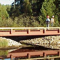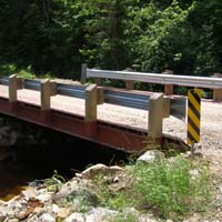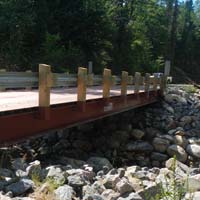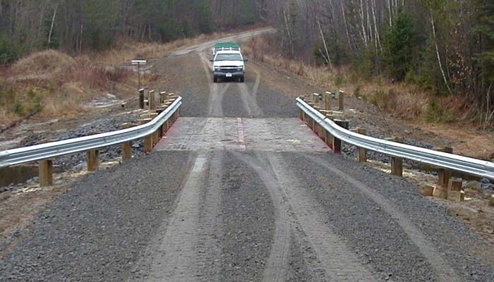 Our single lane RESOURCE ACCESS STRINGER superstructures are designed for full highway loading on low volume roads as a permanent bridge solution.