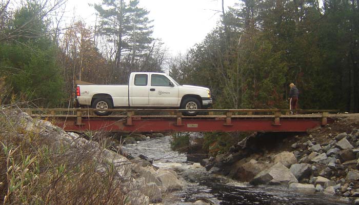 Lessard Resource Access Modular bridge products are a cost effective access solution for the Forest Harvesting, Mineral Exploration, Mining and Construction Industries. They are also economical means of providing access for Cottage Associations, OFSC Members or Individual property owners. In addition to the standard lengths identified below, custom lengths are also available.