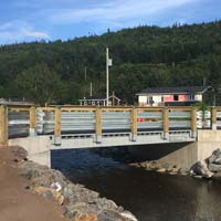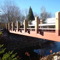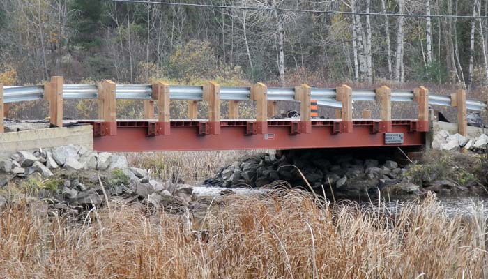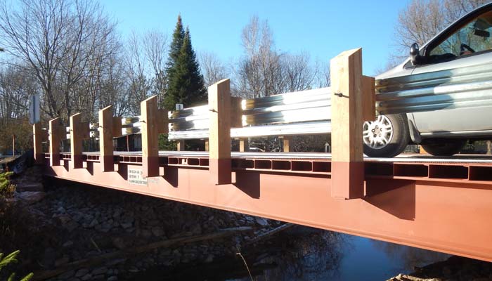 Lessard Municipal bridge products are available in single, single wide and two lane widths. They are delivered in two or three sections and with basic construction knowledge and equipment, can be installed and in use in a matter of hours. Our modular superstructures are a cost effective replacement for bridges located on low volume roads in rural portions of Municipalities throughout Ontario. In addition to the standard lengths identified below, custom lengths are also available.