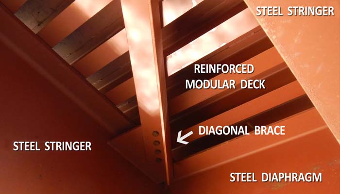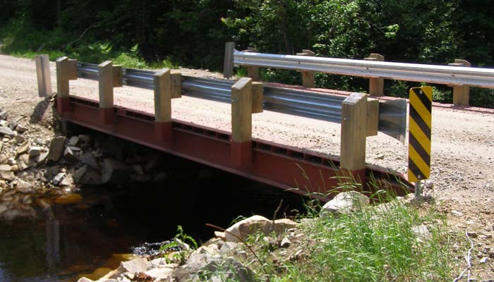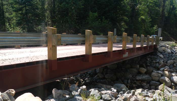 Our single lane RESOURCE ACCESS STRINGER superstructures are designed for full highway loading on low volume roads as a permanent bridge solution.